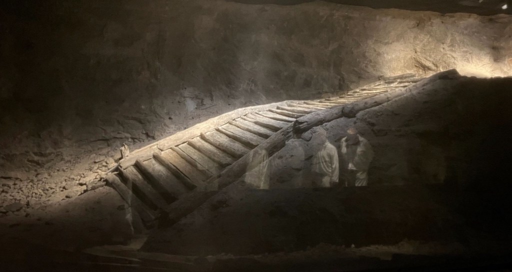 The salt preserve organic matter very well and archaeologists found a perfectly preserved wooden staircase that was 8 meters long and 1.5 meters wide. When it was buried it had been in use for around 100 years. This is the oldest preserved wooden staircase in the world.