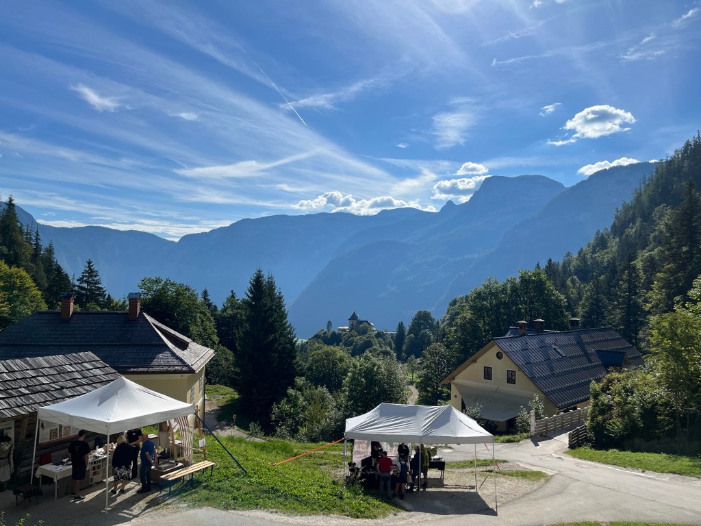 The small town of Hallstatt are as I mentioned located in the Austrian alps, about a hours drive from Salzburg. The town lies on the shore of a lake with high mountains behind it. The only way to reach it used to be by boat or by climbing the mountain paths and entering the town through the attics of the houses.