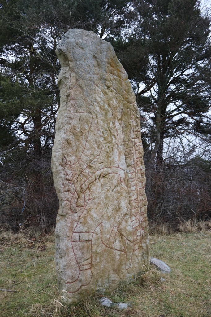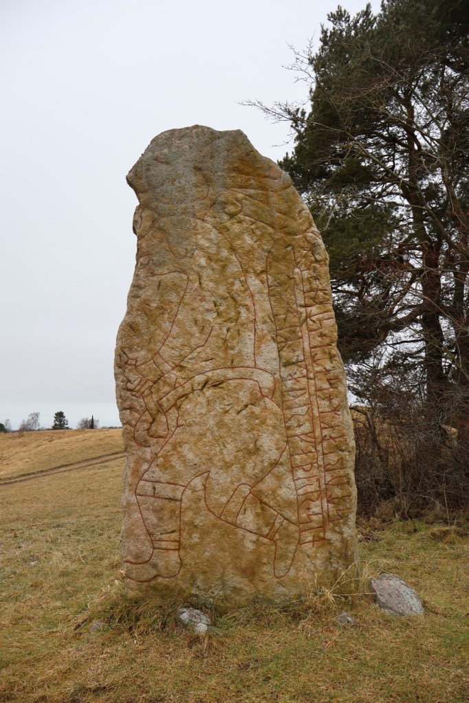 The so called northern rune stone or Vg 56 as it is also known are the smaller of the two measuring 3,1 meters tall and 1,43 meters wide. It is made using red sandstone.