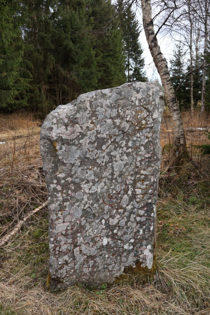 The current location of the stone isn’t where it was originally found. It was found in 1932 as a part of a bridge drum under the road a few meters to the west from the current location. Even if it was officially found in 1932 someone noticed it already in the 1870s but no one seems tho have done anything about it until 60 years later.