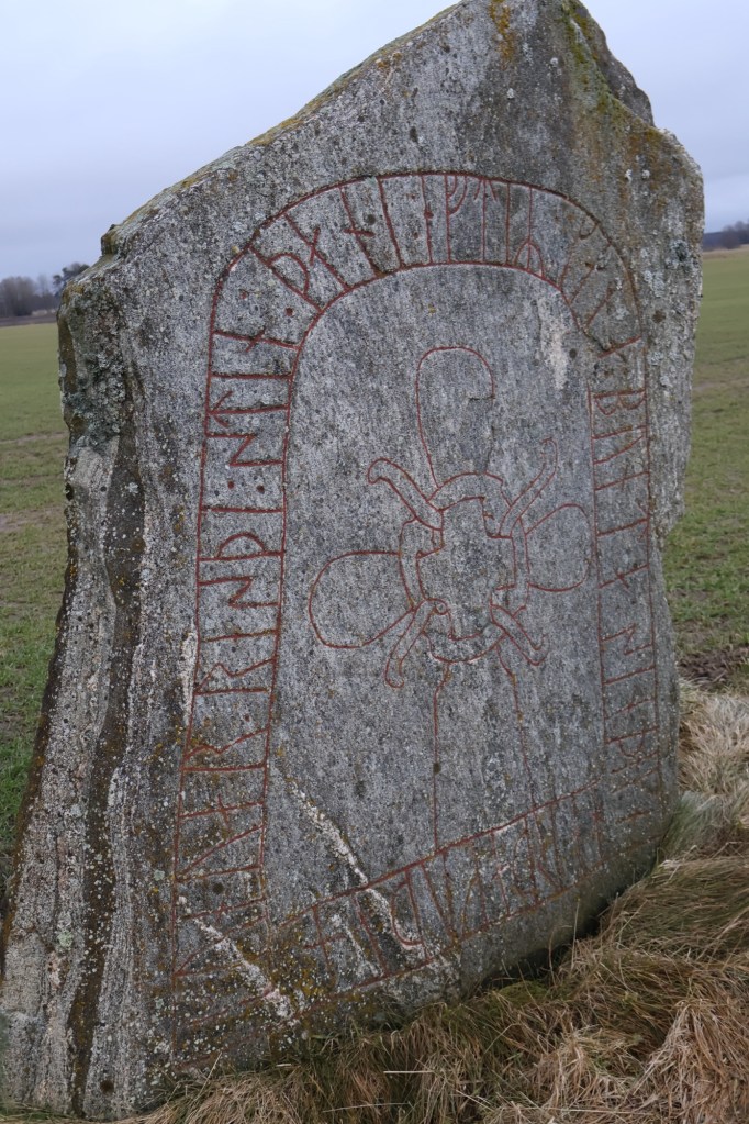 Just next to a country side road that winds its way through a field stands Kanes rune stone. We are now in Eggvena which lies in the province of Västergötland, Sweden.