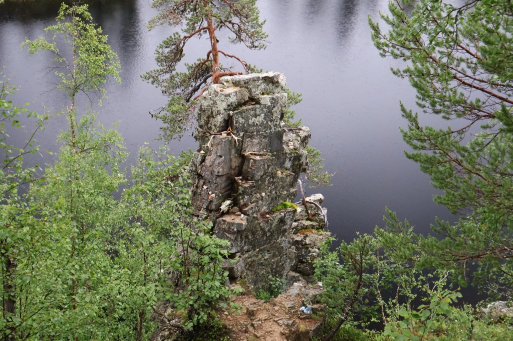 On the steep side of lake Taatsijärvi with its calm, almost black water stands a mighty peculiar looking cliff measuring 10 meters tall.