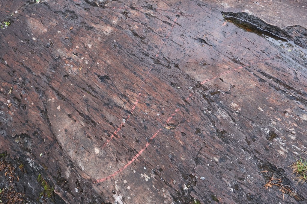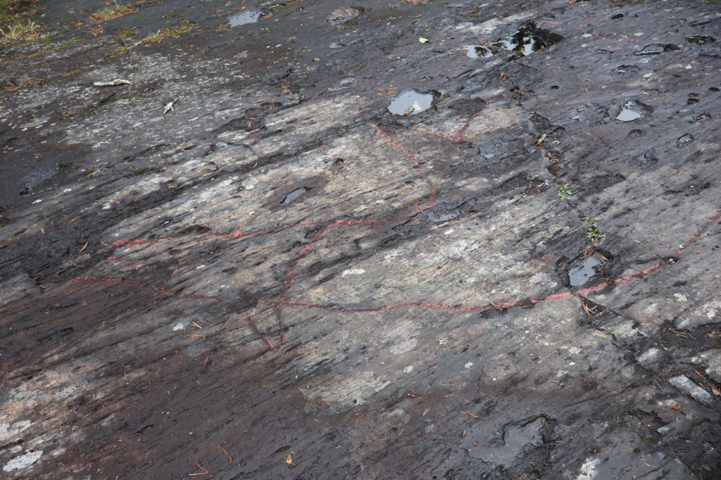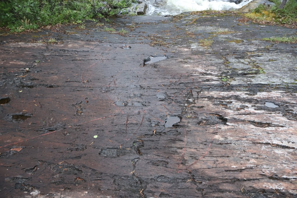 Here the petroglyphs consists of long lines that are hard to interpret. Because of this it is hard if not impossible to date them and for this reason they haven’t been painted in.
