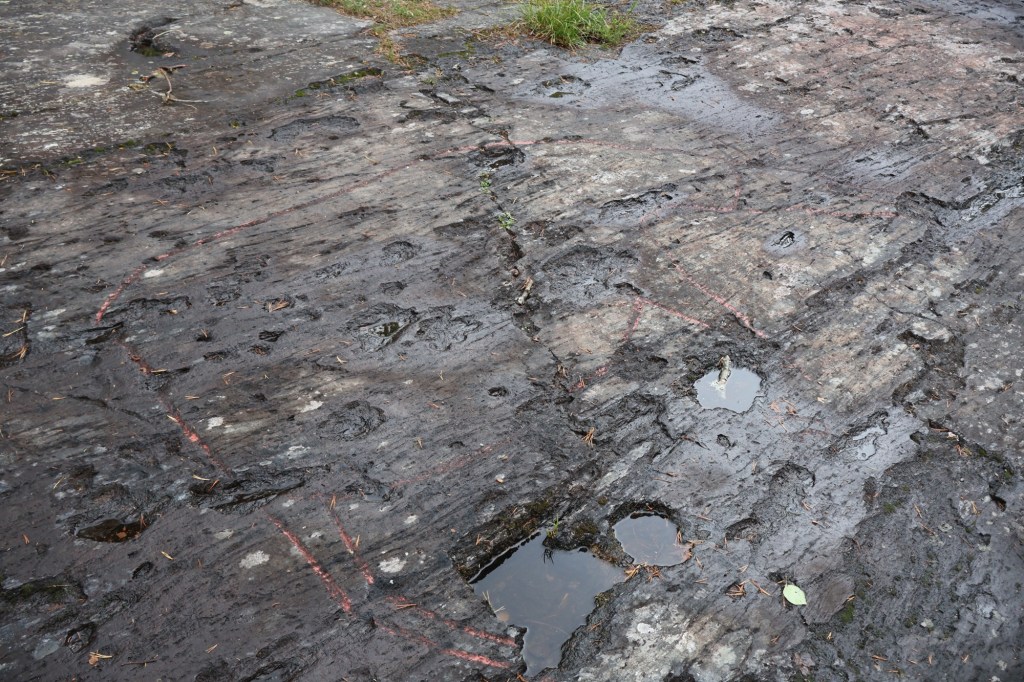 At my visit many petroglyphs, especially the three largest ones were very hard to see and even harder to photograph. I thought that it was because they hadn’t been filled in.