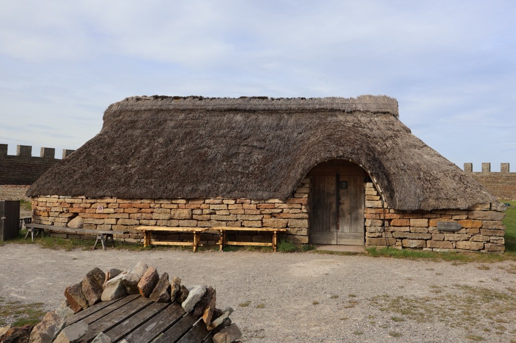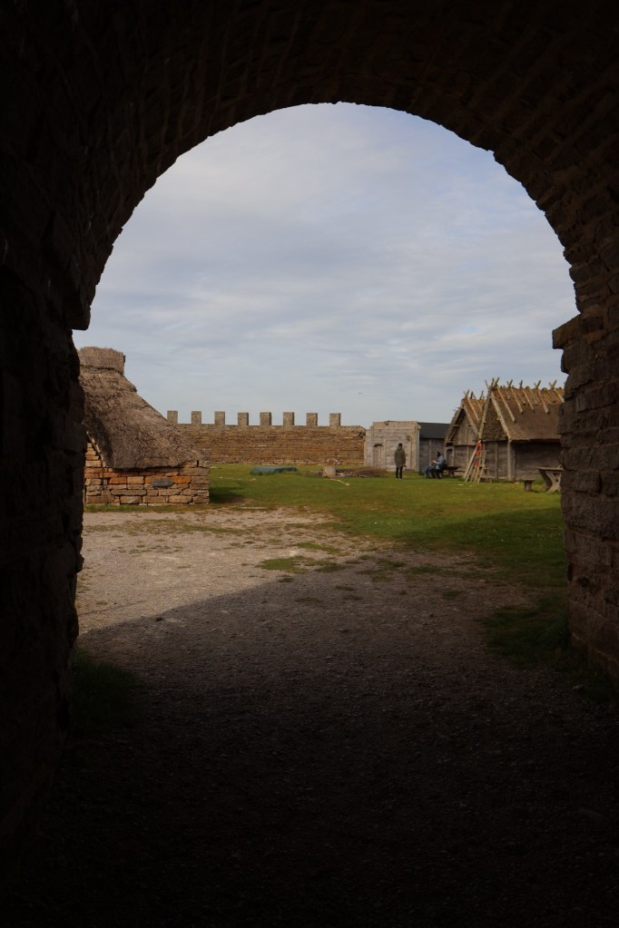 Järnålders hus som inte restaurerats, samt den medeltida porten.