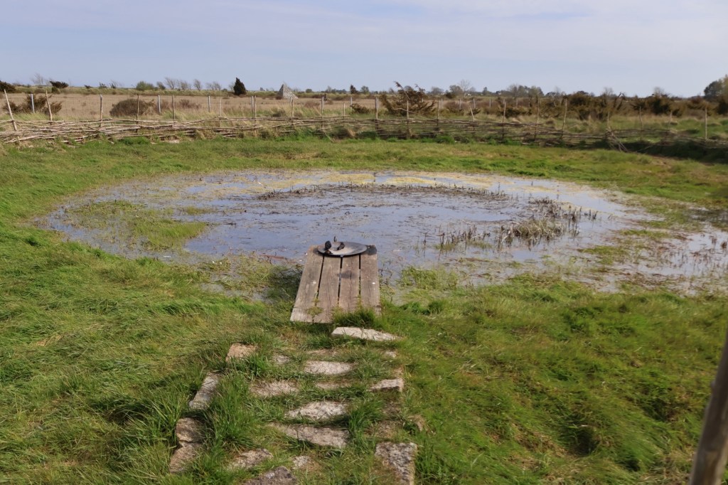 Under utgrävningarna grävde man även ut delar av det som varit en grund sjö. Här hade man under lång tid offrat får, get, kor och många hästar. Man hittade även många hasselstörar.