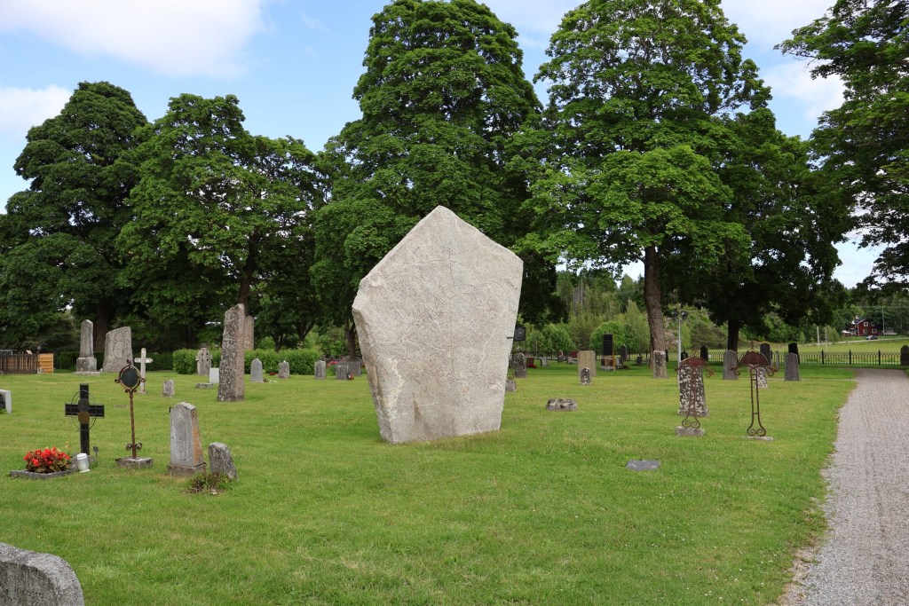 Det sägs att jätten ligger begravd på kyrkogården här. Det är kanske inte så konstigt att sådana historier har uppståt då stenen är så stor.