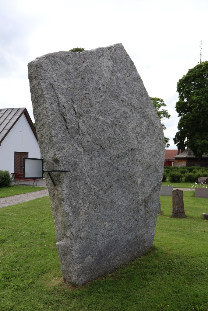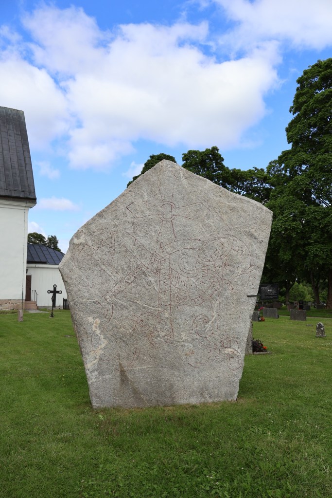 As mentioned, there are two runestones by the church. The largest of them is hard to miss and is called the Hälsingtuna Stone, with the designation HS 10.