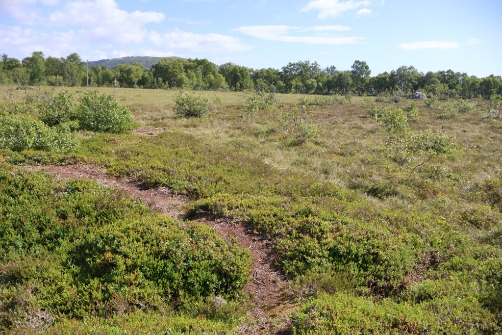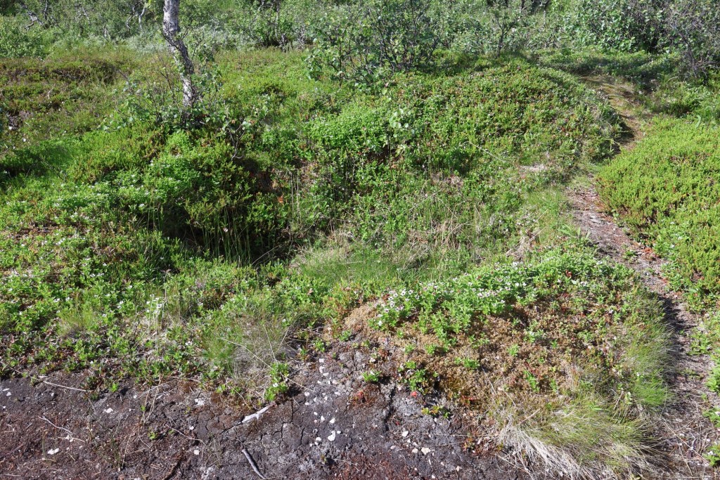 A plank bridge road made of branches and pine logs led to the Tunanlegg, allowing access to the site without getting wet.