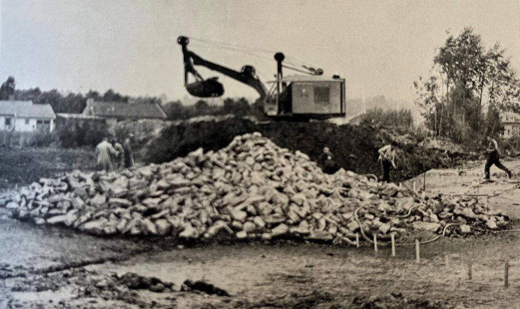 In 1962, the mound measured 35 meters in diameter and was 4 meters high, located in an area that was intended to become a park in the small industrial community. The village was a place for workers at the nearby factory to live.