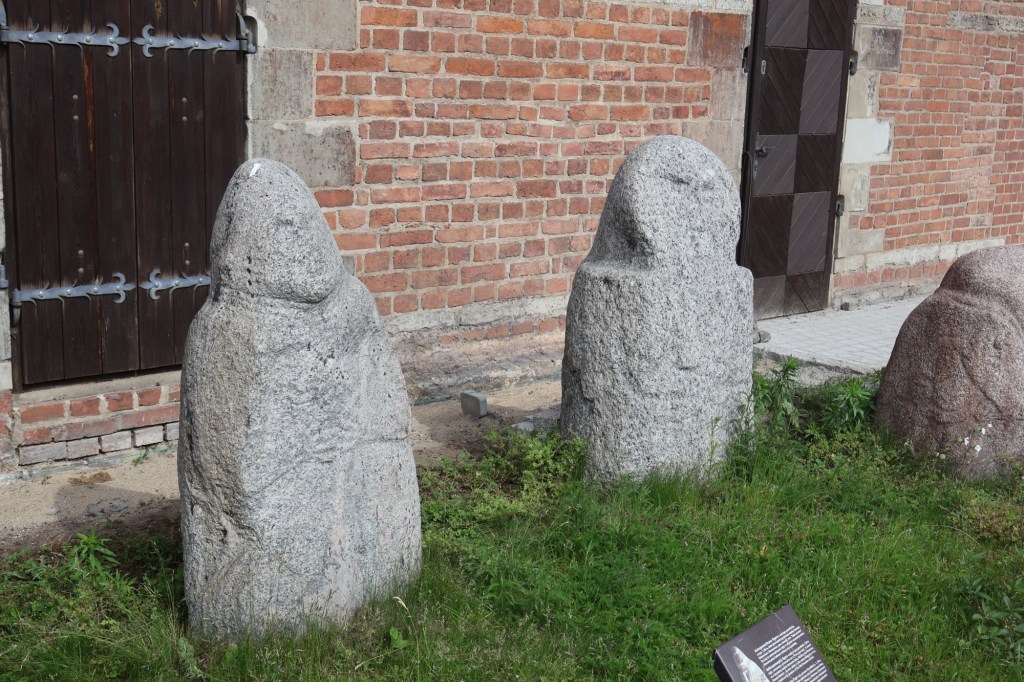 Målet var också att besöka några ovanliga antropomorfa stenstatyer som står placerade precis utanför museet vända mot floden Mòtława.